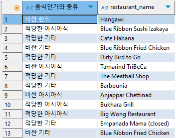 예시3)정확히는 레스토랑별 평균금액을 비교해야할거같아서 다시작성